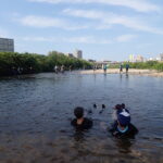 身近な豊平川を知ってもらうために、多様な生態(魚類や底生動物など)を一緒に観察したり、川流れにも体験しました。