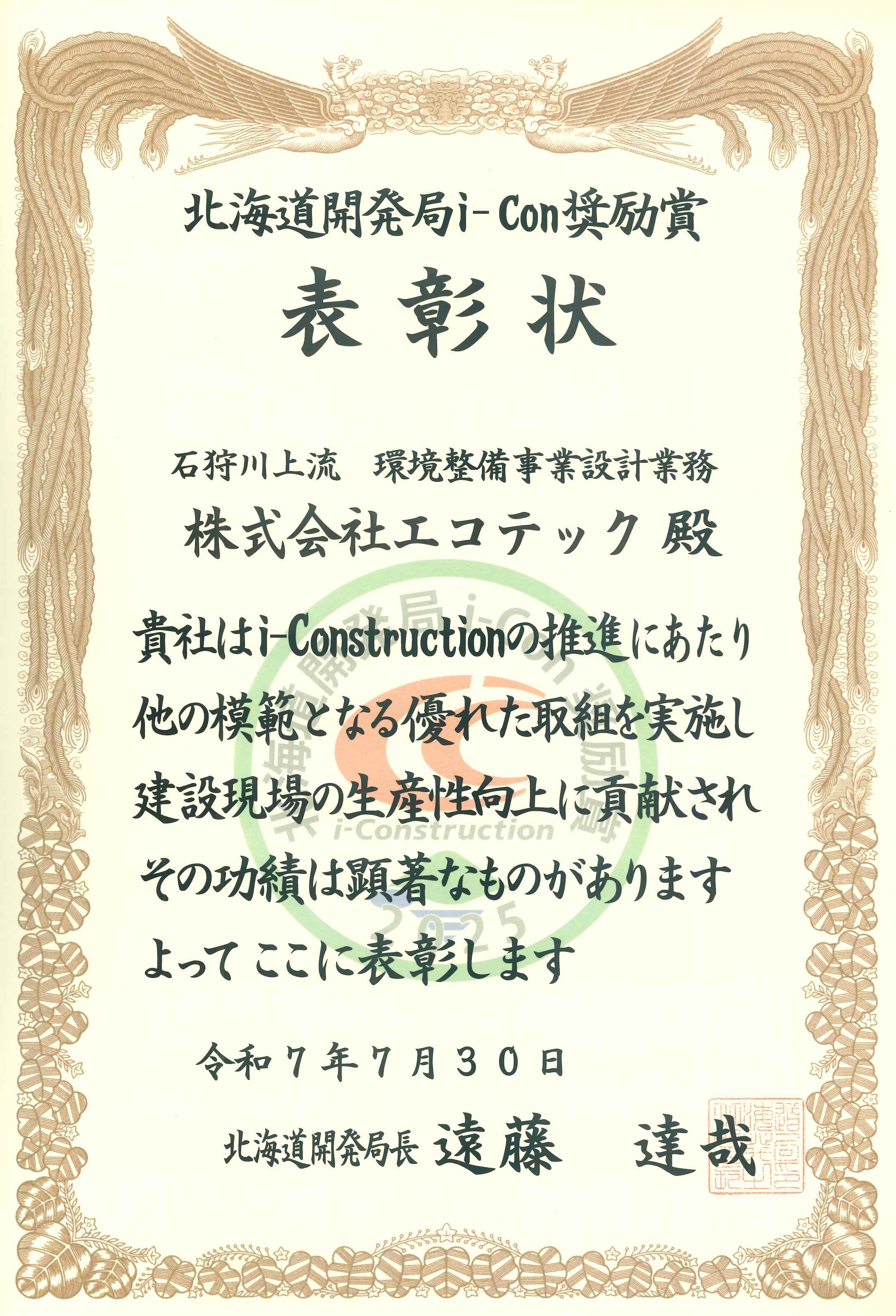北海道開発局i-Con奨励賞2025を受賞いたしました